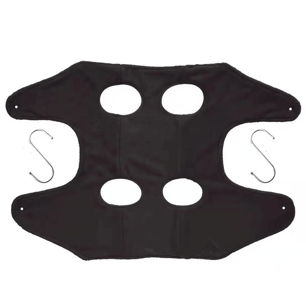 - [Simple & Convenient to Use] Put the dog's legs into the holes, front and rear; then use the hooks to hang the hammock off the ground. If your dog feels nervous for the first time, try some snacks to soothe him. He will calm down quickly and have minimal difficulty. When your dog gets used to the hammock, she will even enjoy it.