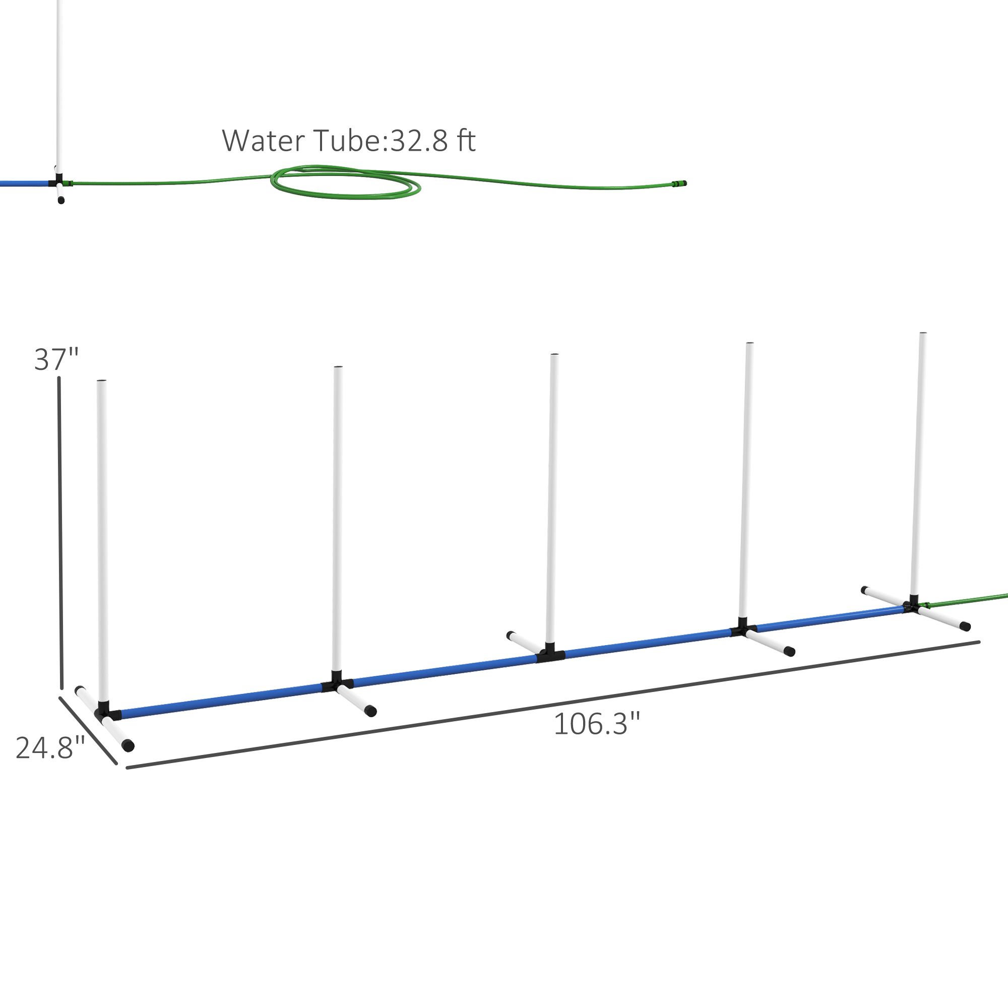 • - Weave Poles: 106.3" L x 24.8" W x 37" H