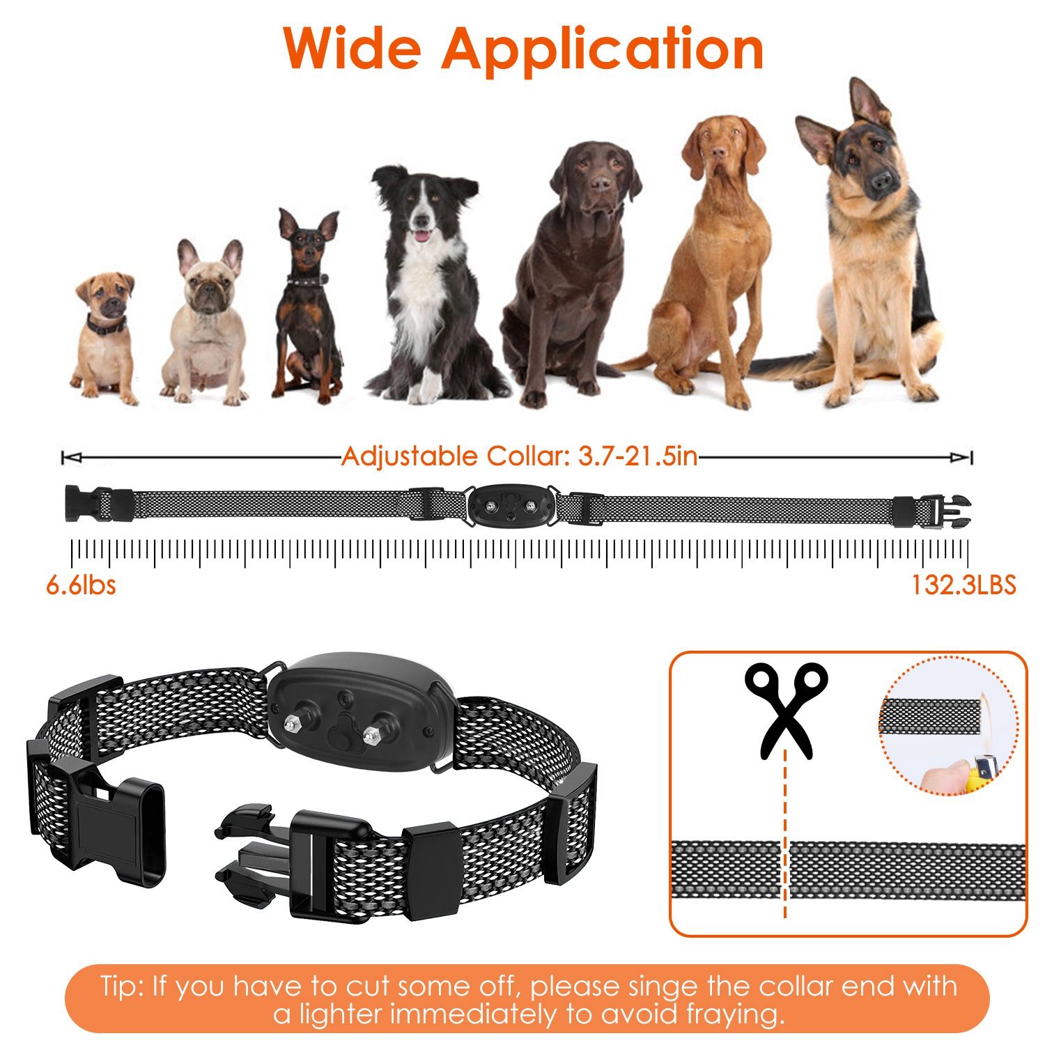 *Efficient Bark Control*:Come with intelligent sensors and sound wave recognition technology,the dog bark collar can accurately detect your dog’s barking and help it stop barking.