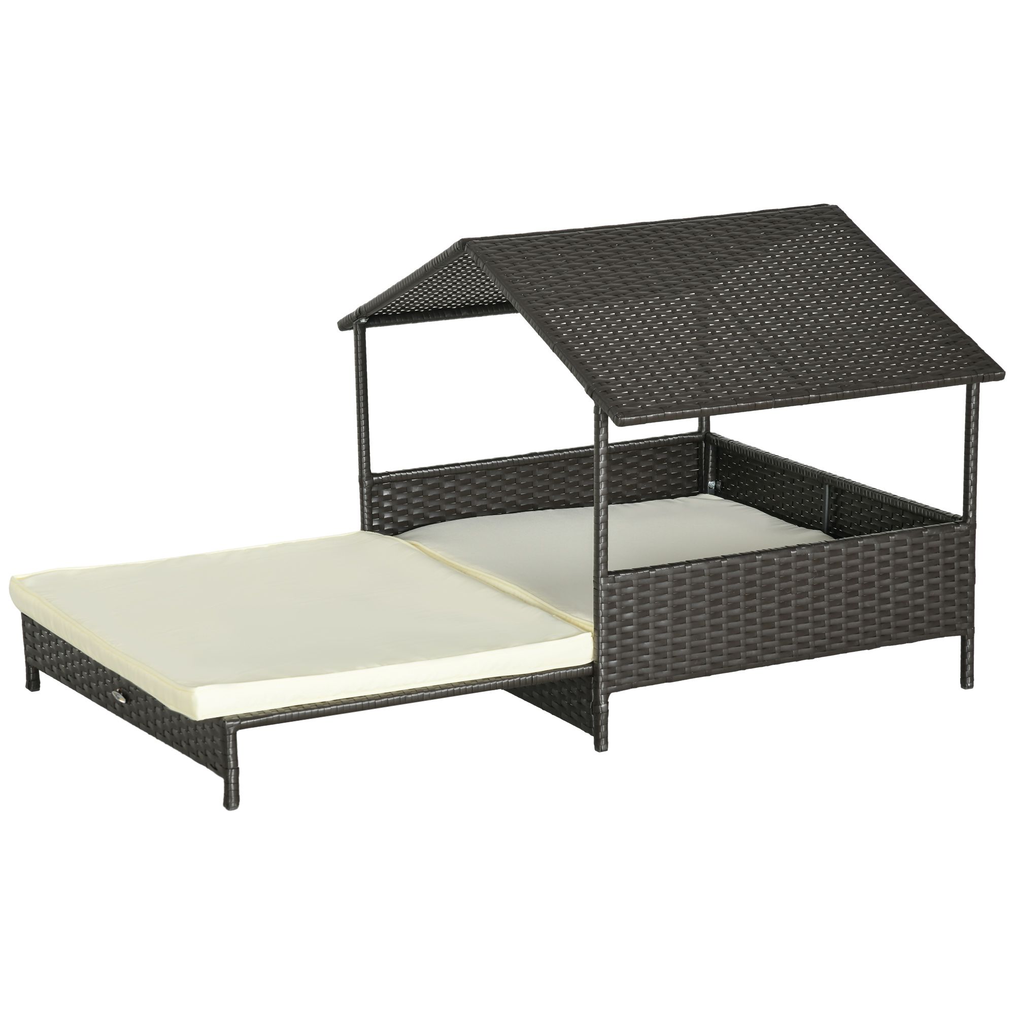 Home > PawHut Extendable Wicker Outdoor Dog Bed with Waterproof Roof Soft Cushion Small Medium Dogs Cream White